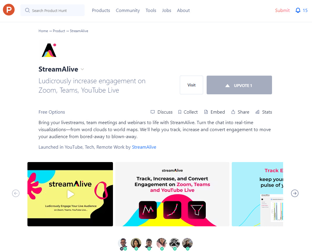 You can support the launch by visiting the StreamAlive page on ProductHunt