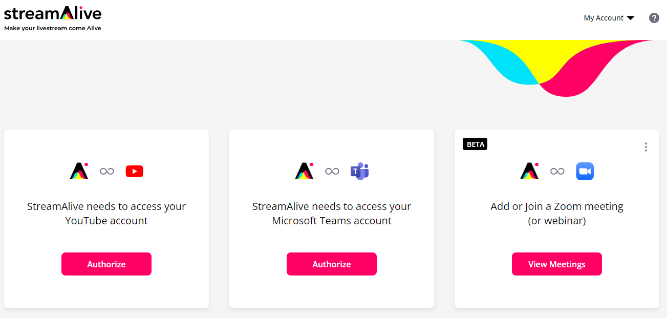 Once logged in, users will be able to connect their YouTube, Teams, or Zoom accounts.