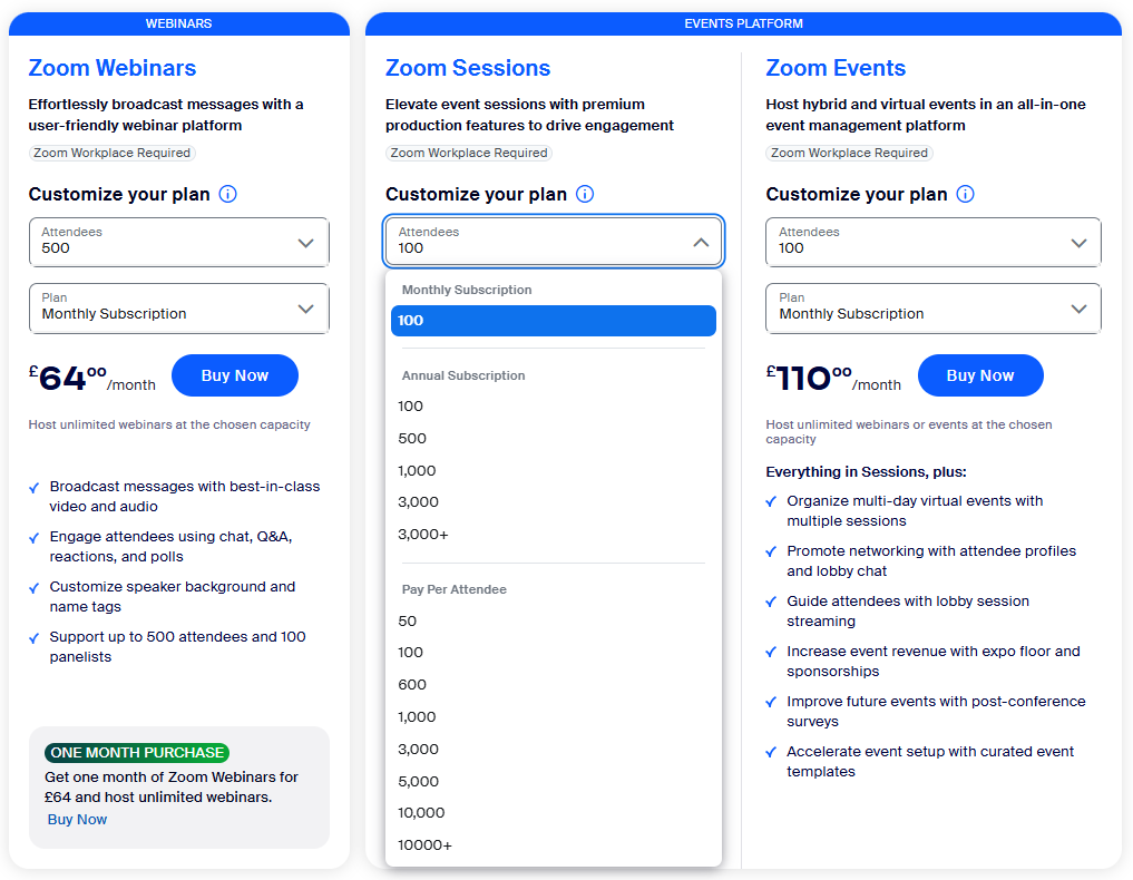 Now that we had the data and feedback, we knew the new pricing plans needed to offer more granularity regarding commenters, similar to Zoom’s webinar and events pricing plans for attendees.