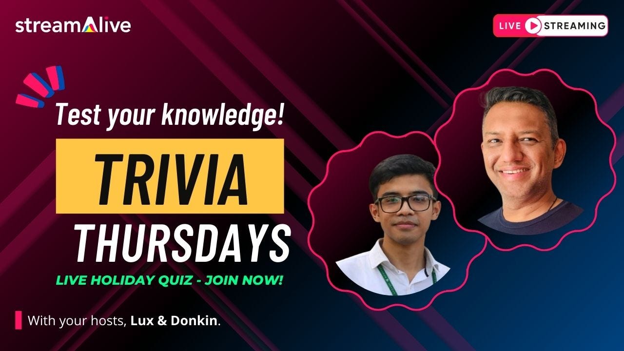 We’ll be running a weekly quiz livestream using StreamAlive’s quizzing interaction. Test your knowledge on a variety of topics!