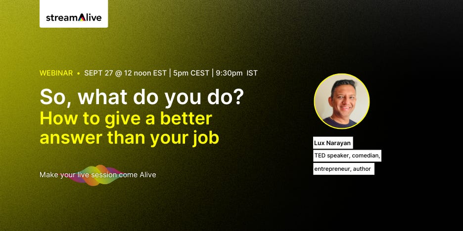 Before we get into this week’s newsletter, don’t forget to register for the upcoming workshop on how to better answer the question: So, what do you do? on September 27th at 12 noon EST | 9:30 pm IST.