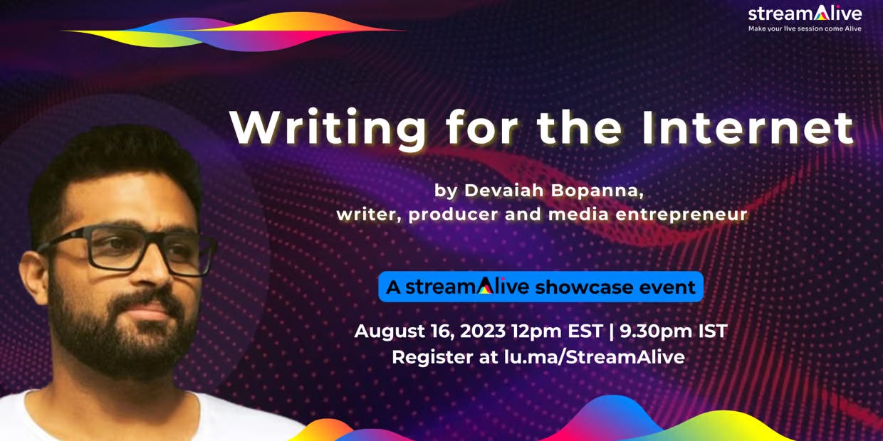 (We usually record our live sessions but the material Devaiah is giving away is so valuable he’s requested no recordings be made. So, if you want to learn from the pro, save your seat and show up!).