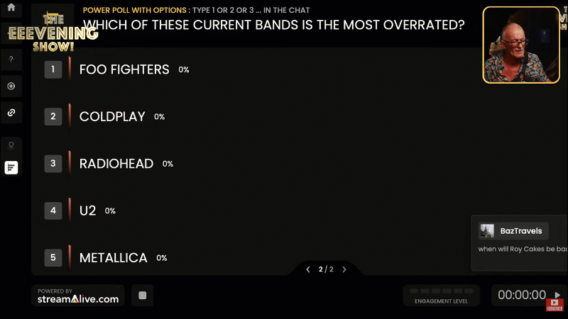 Ray uses StreamAlive’s audience engagement tools throughout his 90-minute shows to boost engagement and make the audience feel like they are a key part of the show.