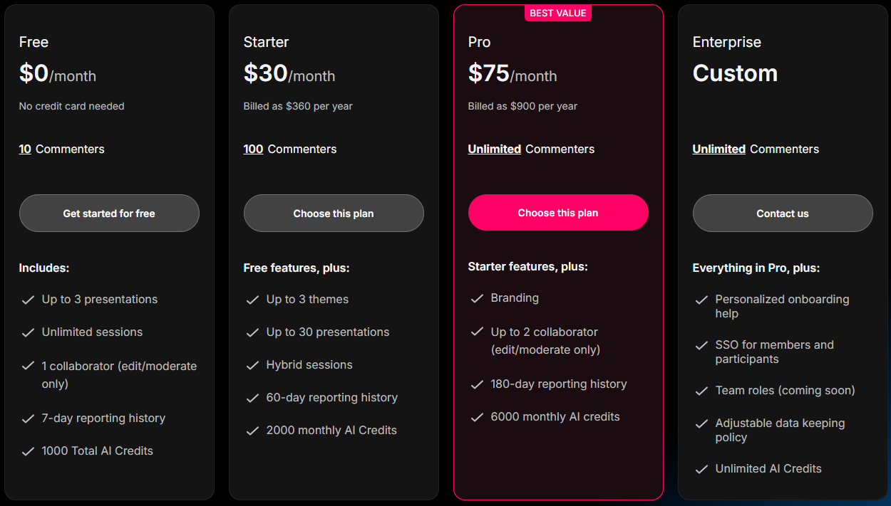 Increased AI tokens for generating questions from a prompt, scanning your PPT to generate questions from your content, analyzing the chat and turning it into word clouds, summaries, and images, etc.