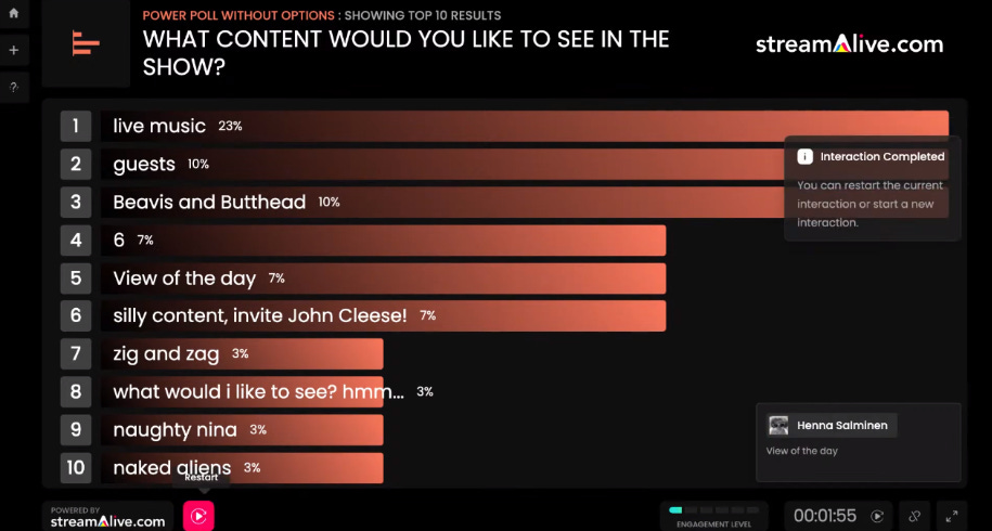 The last couple of weeks saw us get interviewed by John Chen of Engaging Virtual Meetings, and watch an ex-MTV presenter gets ideas for his future livestreams using Power Polls.