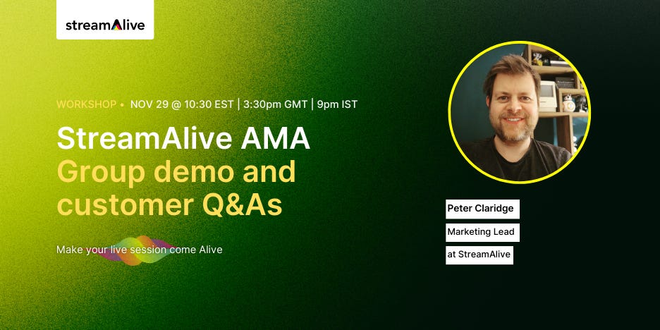 Next week we are hosting a #StreamAliveAMA. It’s your chance to get a live group demo, ask questions and connect with other StreamAlive customers.