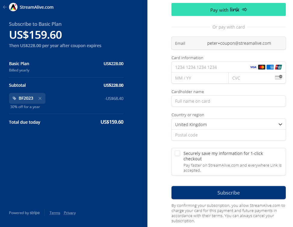 But there you go. The Black Friday deal that nearly didn’t happen because there is no option in Stripe to enable coupons on the payment field.