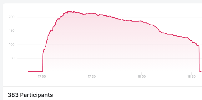 Attendance peaked at 221 in the first 15 minutes and at the end of 60 minutes, we still had an incredible 85% of the audience tuned in.