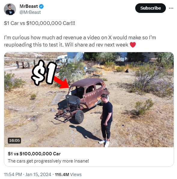 Will Mr. Beast make millions in revenue share from X?