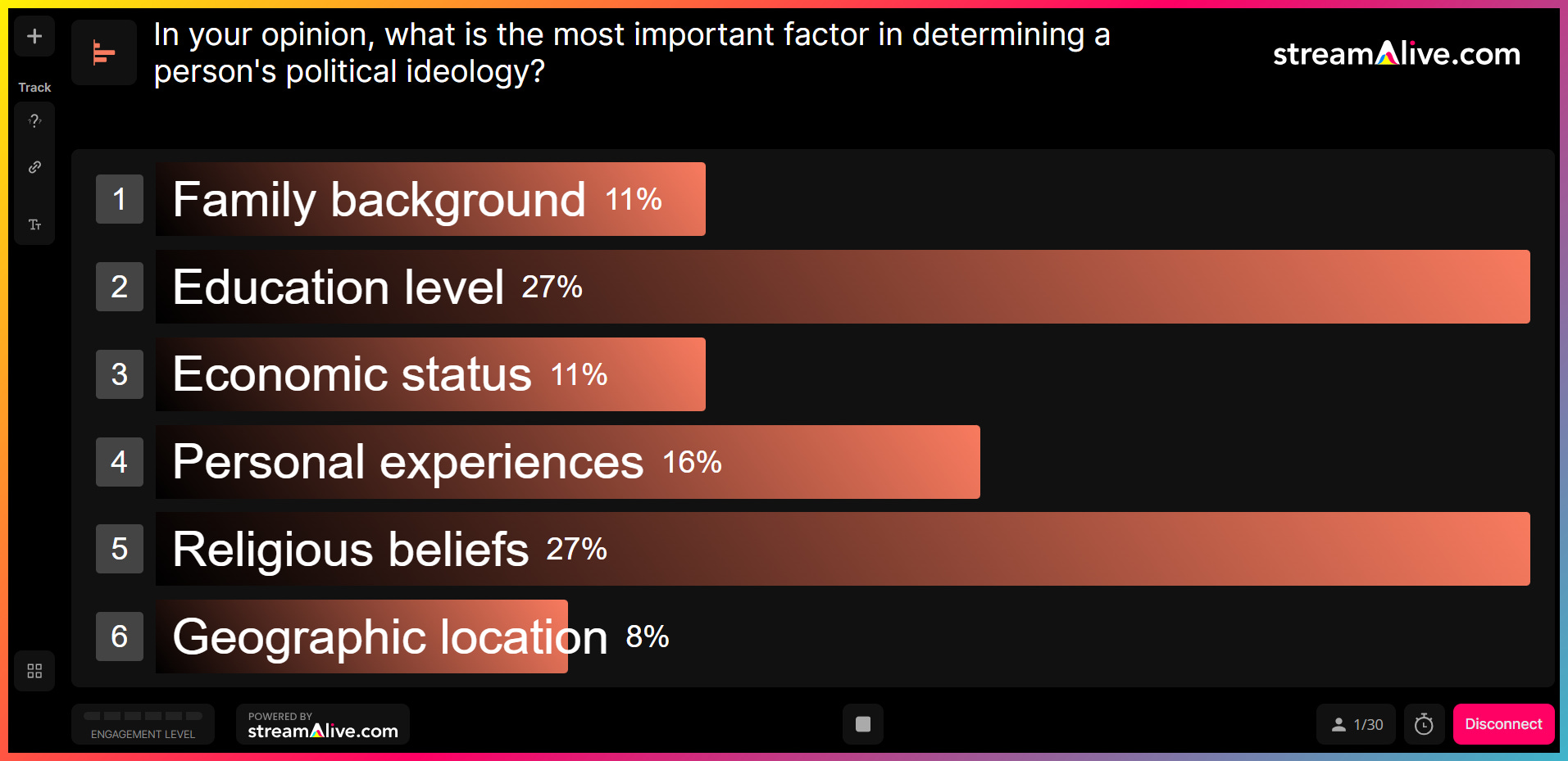 To save your results, you just need to sign up for a free StreamAlive account which you can do directly in our app for Zoom.The interactions are limited to the first 30 participants. If your session has 50 people and 35 people answer your poll, only the first 30 responses are counted.