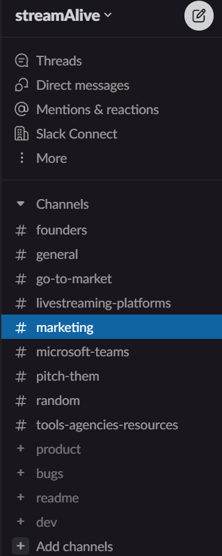 My advice when it comes to tools: Don’t overthink them. You could spend hours researching the right tool, or you can trust the herd and go with the market leader in each segment (assuming the price is right). We’re now at a size where we need a dedicated team chat tool, and there are various options available. But, Slack is the choice for hundreds of thousands of companies, so it’s almost certainly the right choice for StreamAlive.