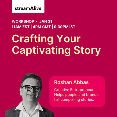 Jan 31 - Roshan Abbas will teach the art of storyselling for yourself or your brand