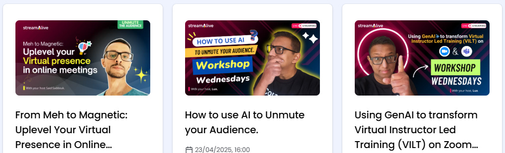 Saidâs a busy man because the day after his workshop with StreamAlive heâs doing a free tutorial session on how to de-Zoom-ify your live sessions using StreamAlive!