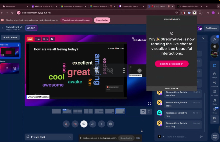 StreamAlive’s browser app relies on bots and APIs to capture the chat stream, but with the super-charged Chrome extension, web-based chat streams can now be captured and converted into visual interactions.