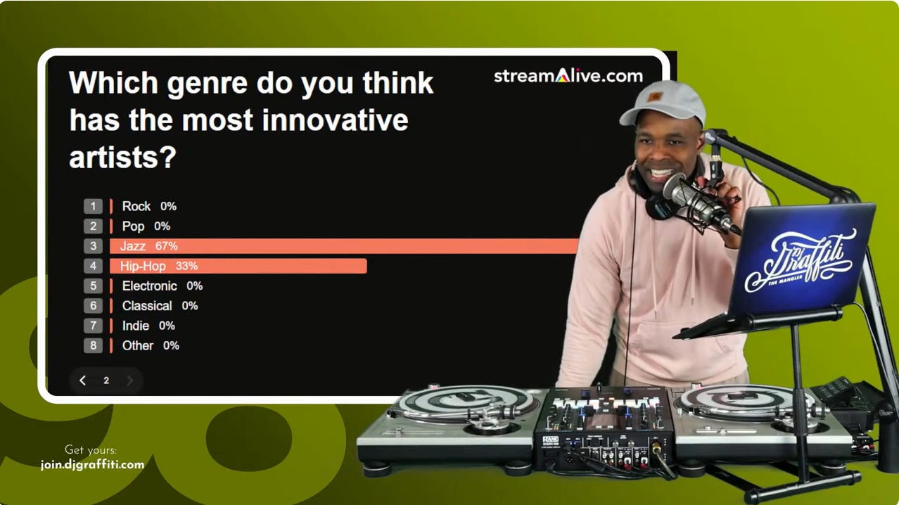 People are amazed and want to keep commenting to see themselves show up on the screen. There's much more engagement in the chat. Often people can put a DJ stream on in the background and treat it like Spotify, but when I'm using StreamAlive they stay around and active which gives me energy to play even better DJ sets.