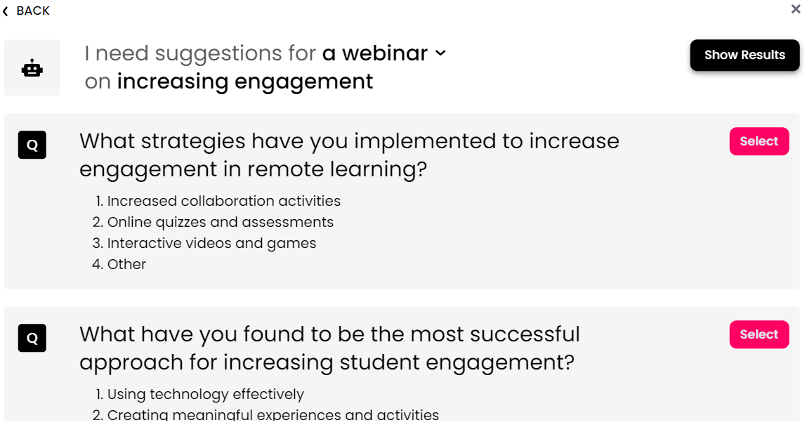 With Artificial Intelligence taking over the internet, StreamAlive too has hopped on the GPT-3 bandwagon. If you’re struggling to come up with questions for your next class, webinar, all-hands, or more, just ask our shiny new GPT-3 integration to do it for you!