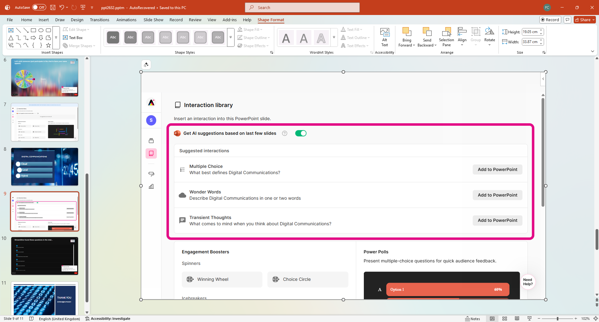 You have over a dozen interactions to choose from, like Word Clouds, polls, spinner wheels, and interactive maps