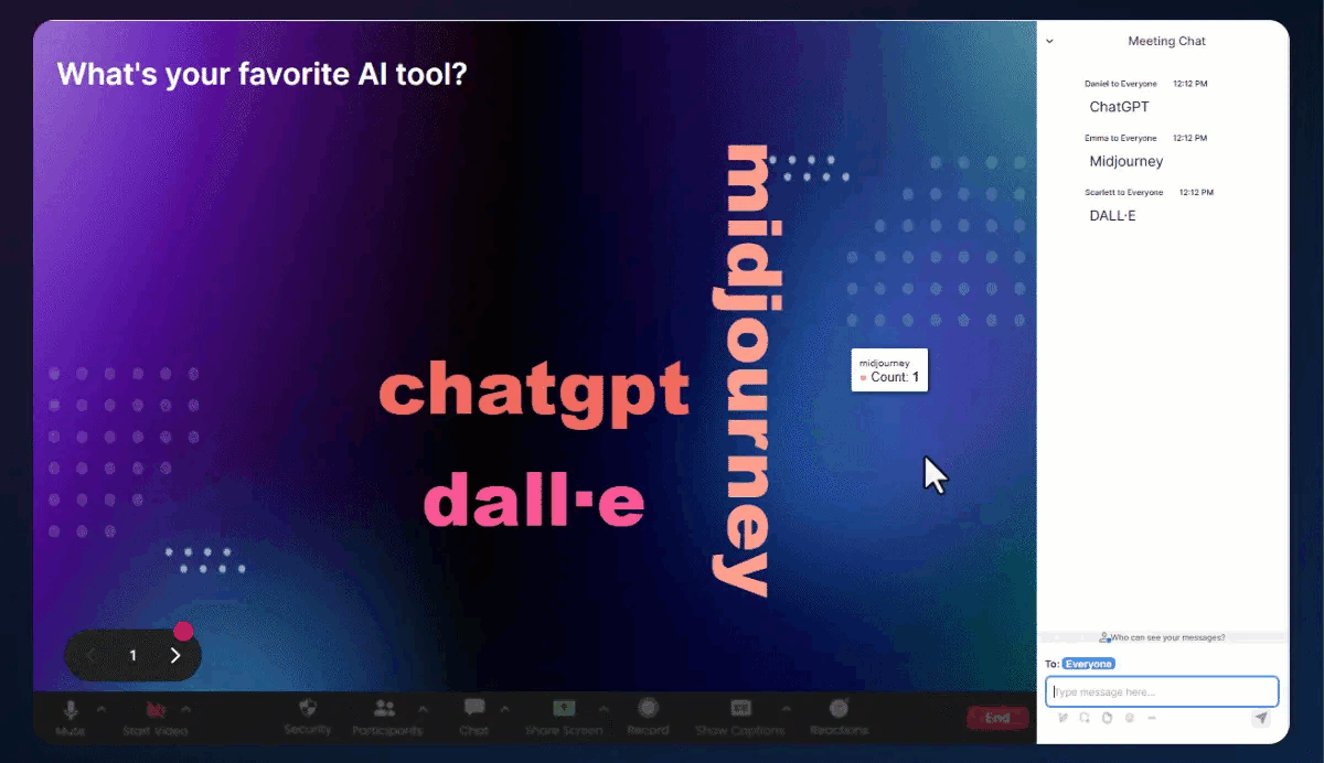 And itās all powered by the chat of your meeting platform. All your audience has to do is type it in the chat.