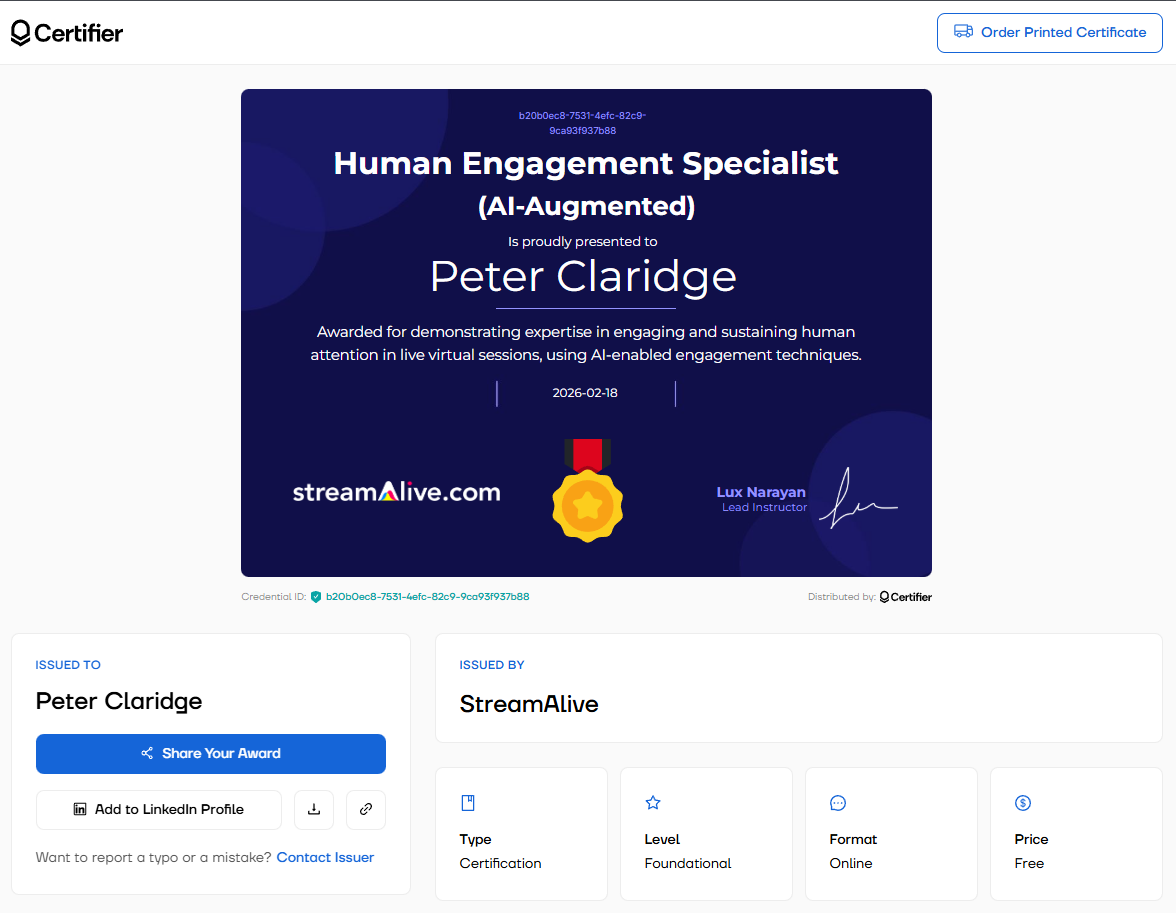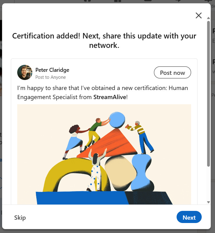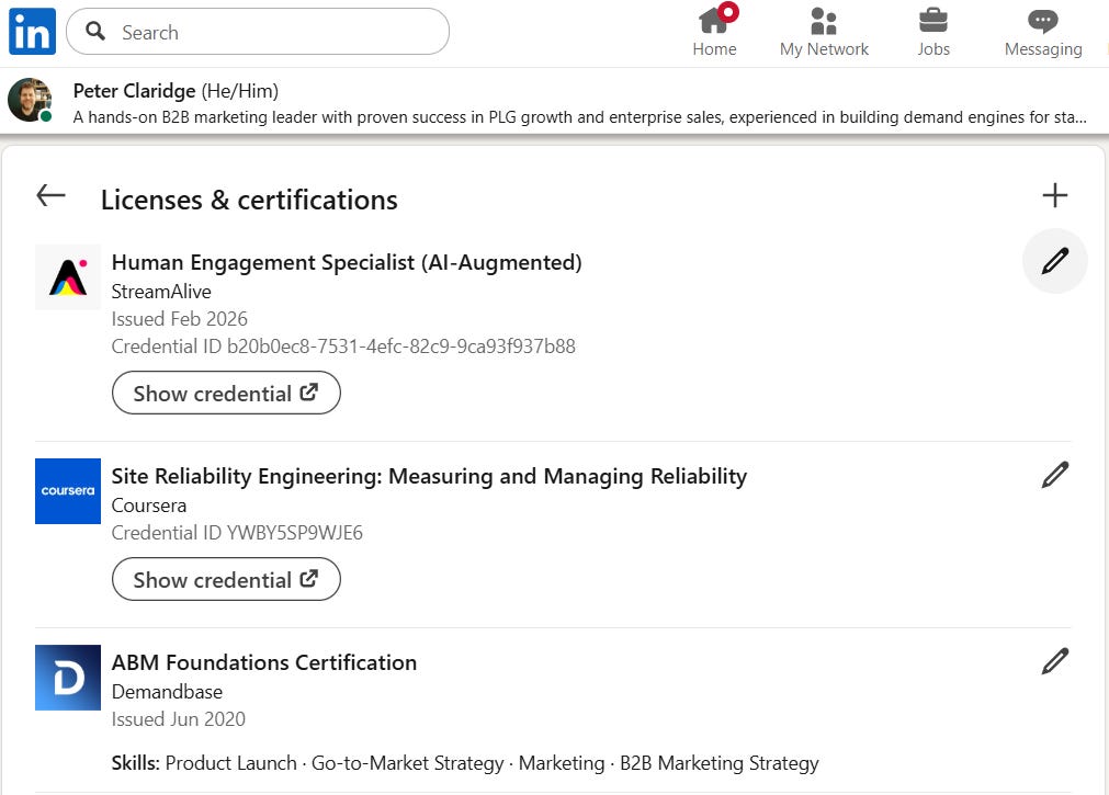 ✓ Certified Human Engagement Specialist credential you can add to your LinkedIn