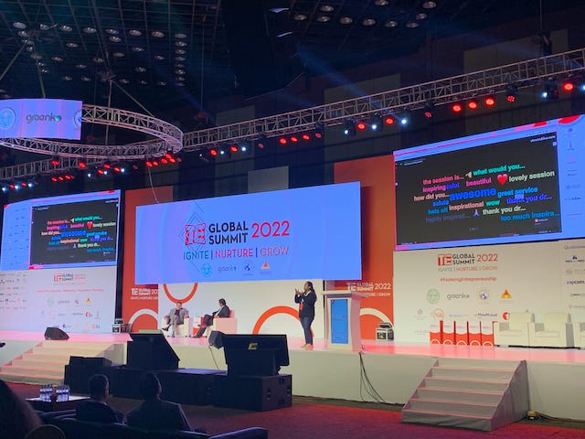 Usage at a couple of large in-person events including the TiE Global summit with 3000 attendees. Here’s StreamAlive capturing the audience’s opinions on the sessions in a dynamic wordcloud- on the two screens on either side