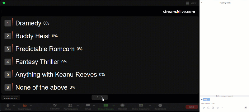Well, you can always connect StreamAlive to a Zoom meeting, create your own in-person session, or connect to any of the other livestreaming platforms we support at any time to try out the audience interaction features.